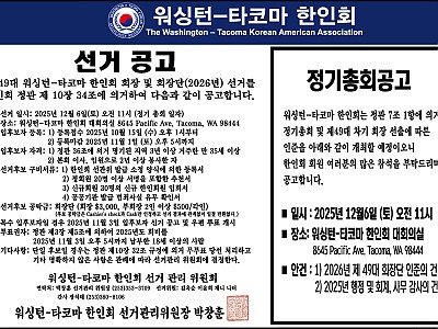 워싱턴–타코마 한인회, 제49대 회장 및 회장단 선거 공고