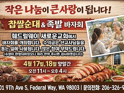 훼드럴웨이 새로운교회, 오는 4월 17·18일 오전 11시 바자회 개최