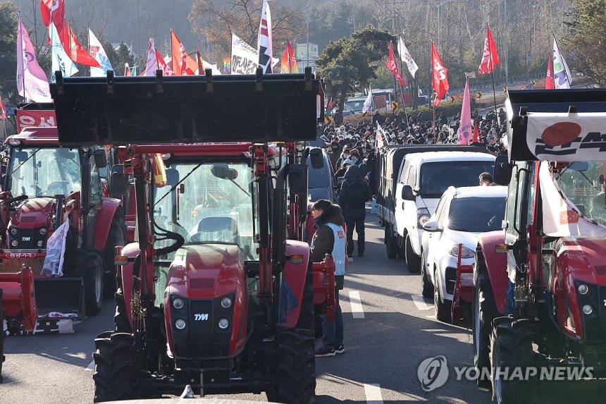 경찰은 전국농민회총연맹(전농) 산하 '전봉준 투쟁단'이 예고한 '트랙터 시위'에 대해서는 제한 통고를 했다고 밝혔다.