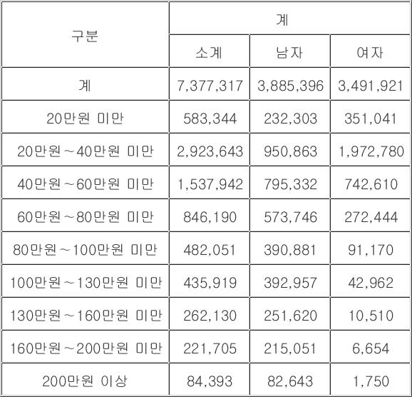 올해 8월 말 기준 100만4천여명…월 200만원 이상은 8만4천명