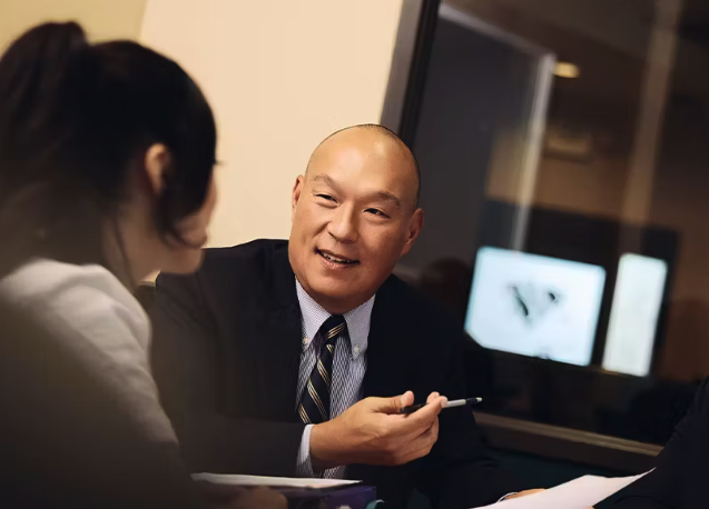1. 마빈 리 변호사가 고객과 상담하고 있다.