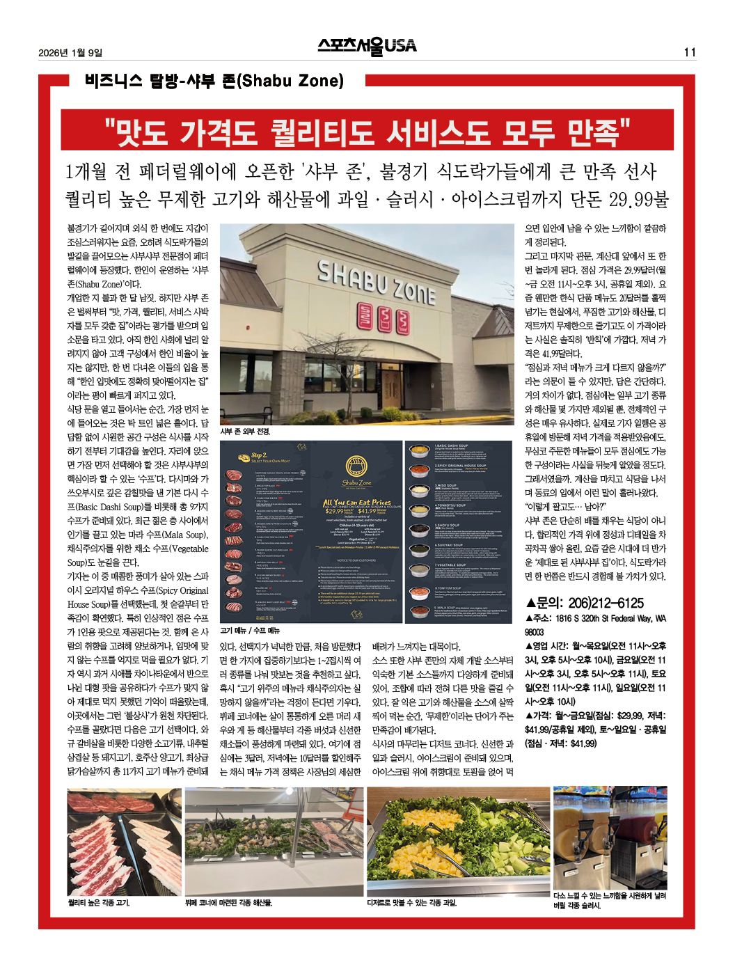 불경기가 길어지며 외식 한 번에도 지갑이 조심스러워지는 요즘, 오히려 식도락가들의 발길을 끌어모으는 샤부샤부 전문점이 페더럴웨이에 등장했다. 한인이 운영하는 ‘샤부 존(Shabu Zone)’이다.