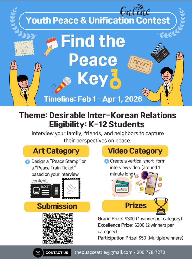 ▲문의: 윤혜성 통일교육분과 위원장(206-778-7270 / thepuacseattle@gmail.com)