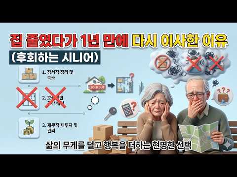 많은 시니어분들이 은퇴 후집을 줄이는 다운사이징을 고민합니다. 하지만 충분한 준비 없이 집을 줄이면나중에 후회하는 경우도 있습니다. 오늘 영상에서는 • 시니어가 다운사이징 할 때 많이 하는 실수 • 집을 줄일 때 꼭 고려해야 할 것 • 후회 없는 다운사이징 방법 을 권미경 부동산이 알려드리겠습니다.