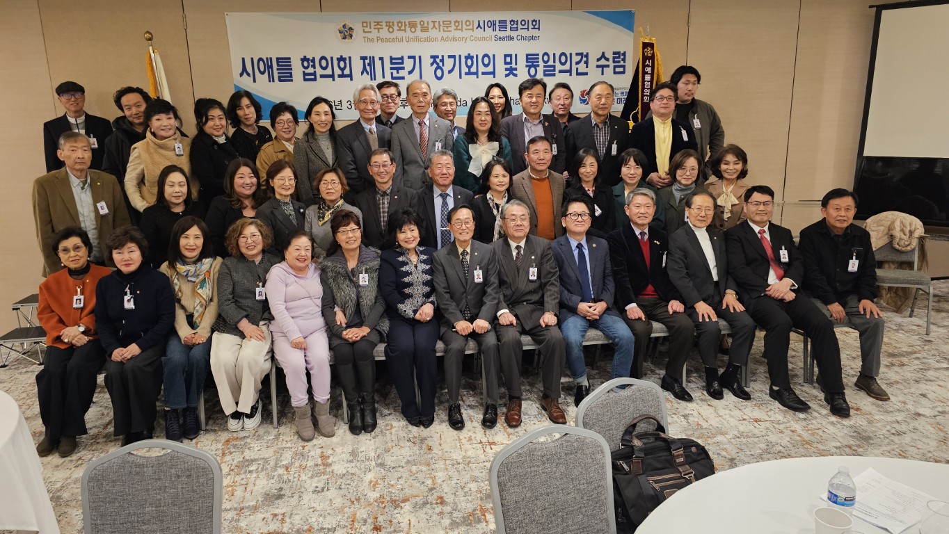 민주평화통일자문회의 시애틀협의회(회장 황규호)가 지난 3월 14일 시애틀 라마다 호텔에서 2026년 제1분기 정기회의를 개최했다. 이번 회의는 “한반도 평화공존을 위한 대내외 정책 추진 방향”을 주제로 열렸으며, 송영욱 포틀랜드지회장과 손석근 앵커리지지회장, 이수잔 상임고문단장, 김성훈 상임고문 등 약 80명이 대면 및 비대면으로 참석했다.